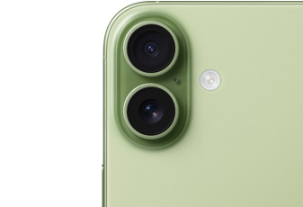 iPhone 17 has a 48MP Fusion Main camera with a 2x optical-quality telephoto, and a 48MP Fusion Ultra Wide camera with 4x the resolution of the Ultra Wide camera on iPhone 16. And now Ultra Wide photos are 24MP by default, the perfect file size for high‑quality storing and sharing. So you’ll get stunning, super-high-resolution shots — up close or far away, indoors and out, in conditions that go from bright to low light. And at 256GB, it has double the starting storage of the previous model. So you can capture to your heart’s content — and beyond.
