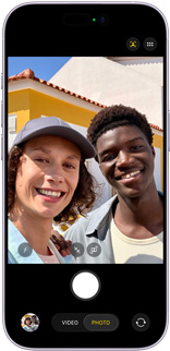An all-new square sensor enables zoom and rotate options, for more flexible ways to frame selfies and videos. And it gets everyone in a group shot — automatically.